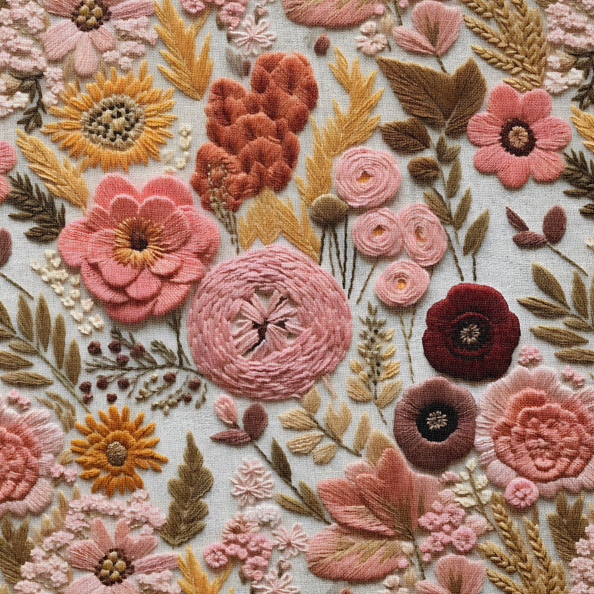 Please carefully review before purchasing this print. This design features a printed embroidery pattern on fabric, and it is not actual embroidered fabric.