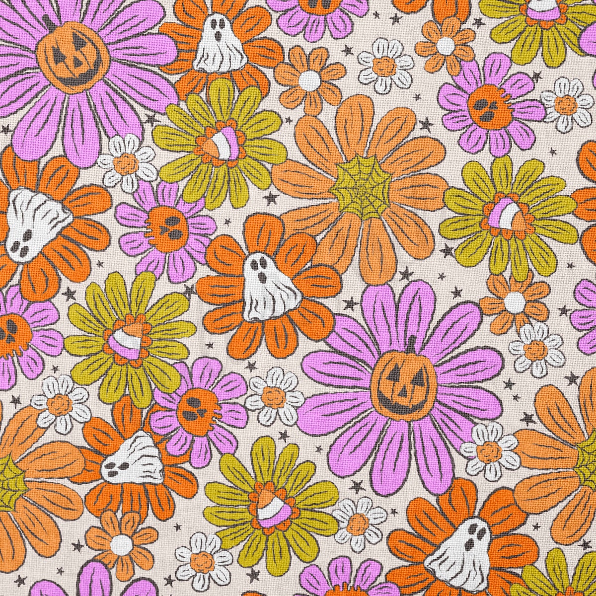 100% Cotton Fabric By the Yard Printed in USA Cotton Sateen - Cotton Halloween Fall Pumpkins СTN1882