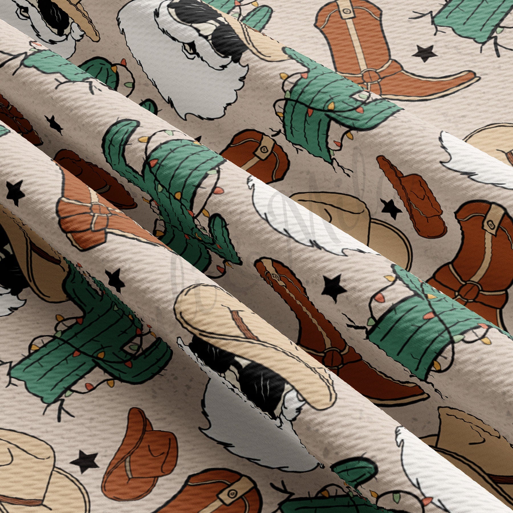 Christmas western Santa Fabric AA941