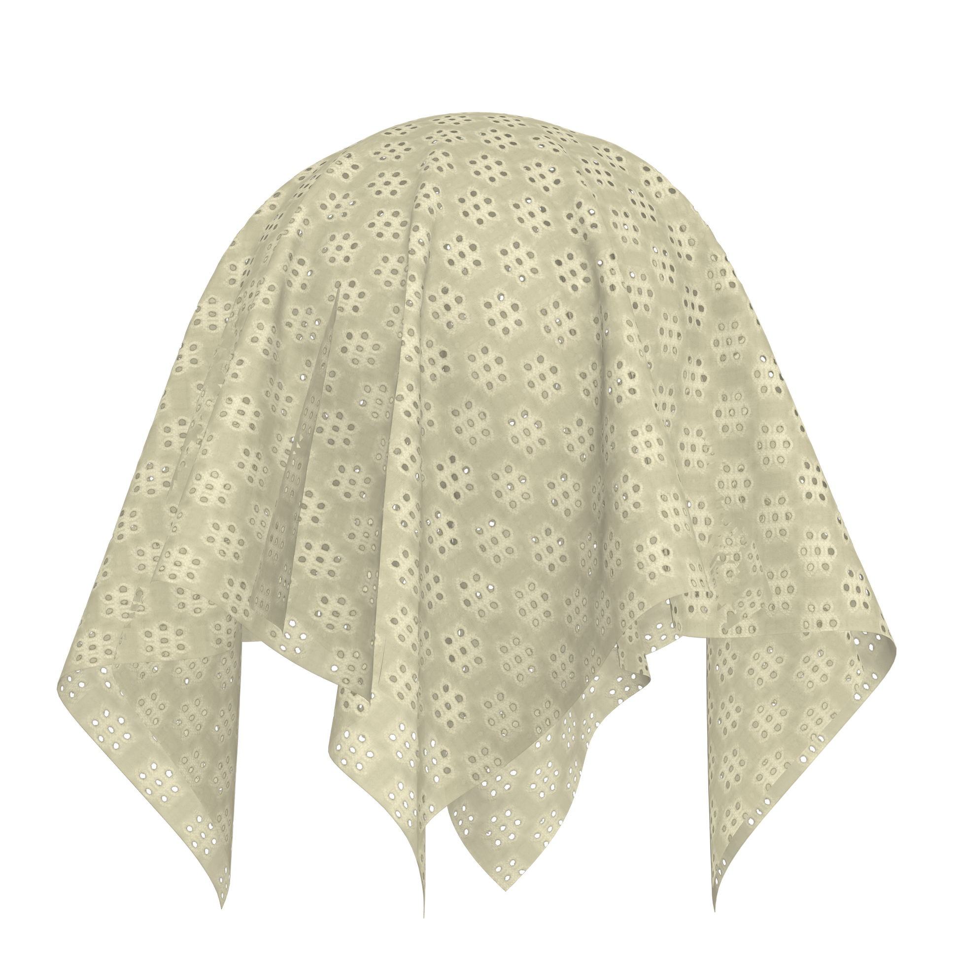 Additionally, this fabric is lightweight, making it suitable for items such as headbands, turbans, bows, and headwraps. It is pierced by small holes, which are finished with stitching, adding texture and visual interest to the fabric.