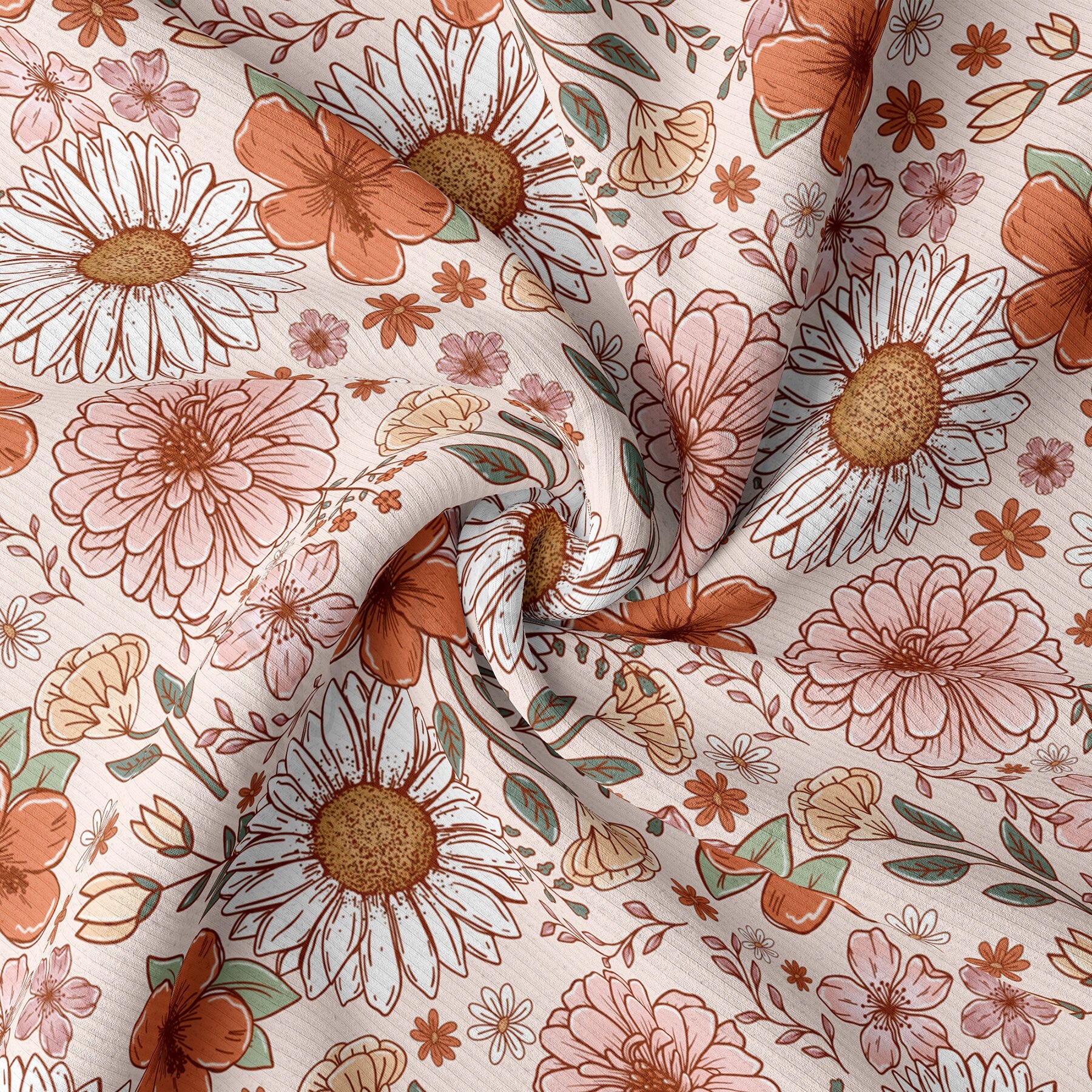 Floral Rib Knit Fabric RBK1575