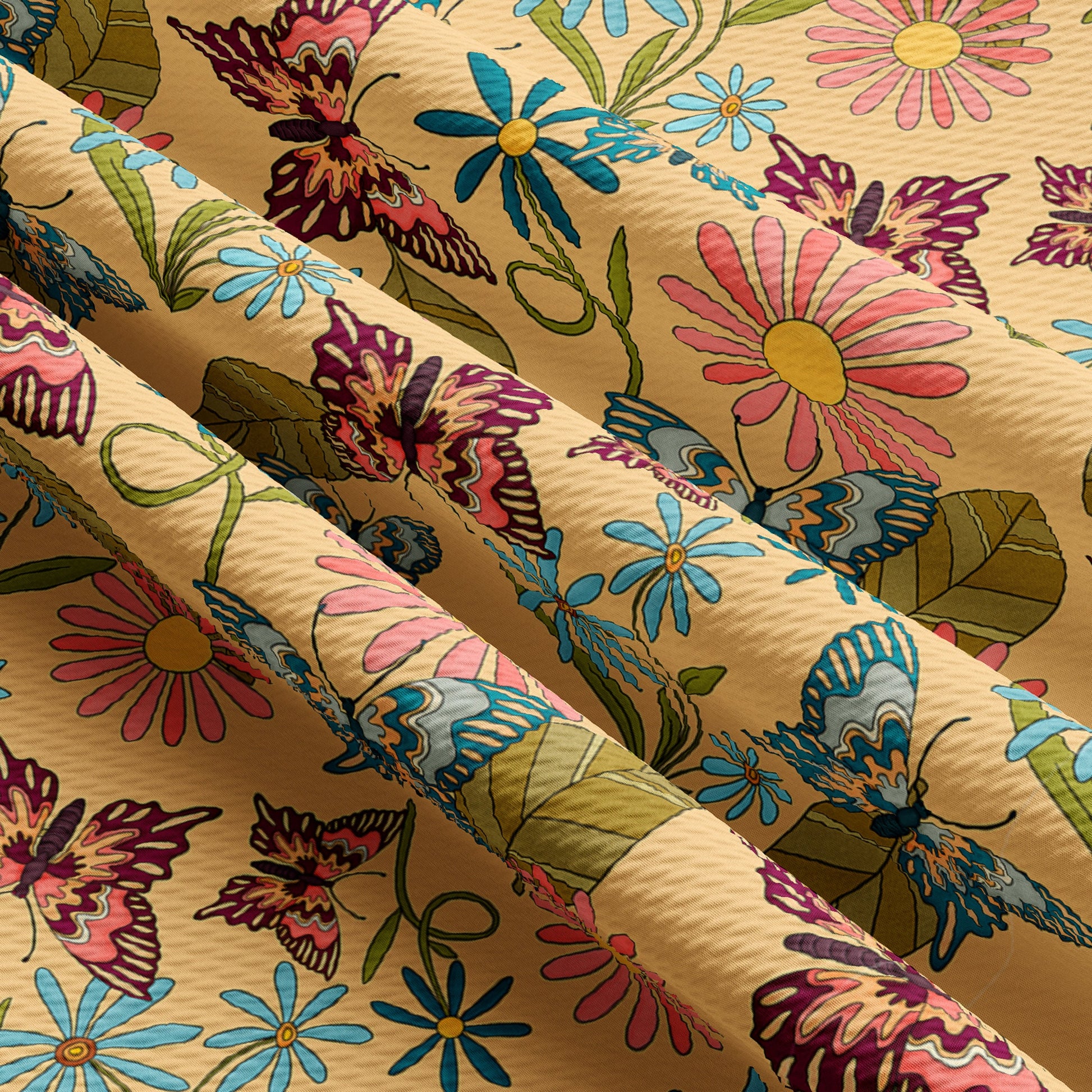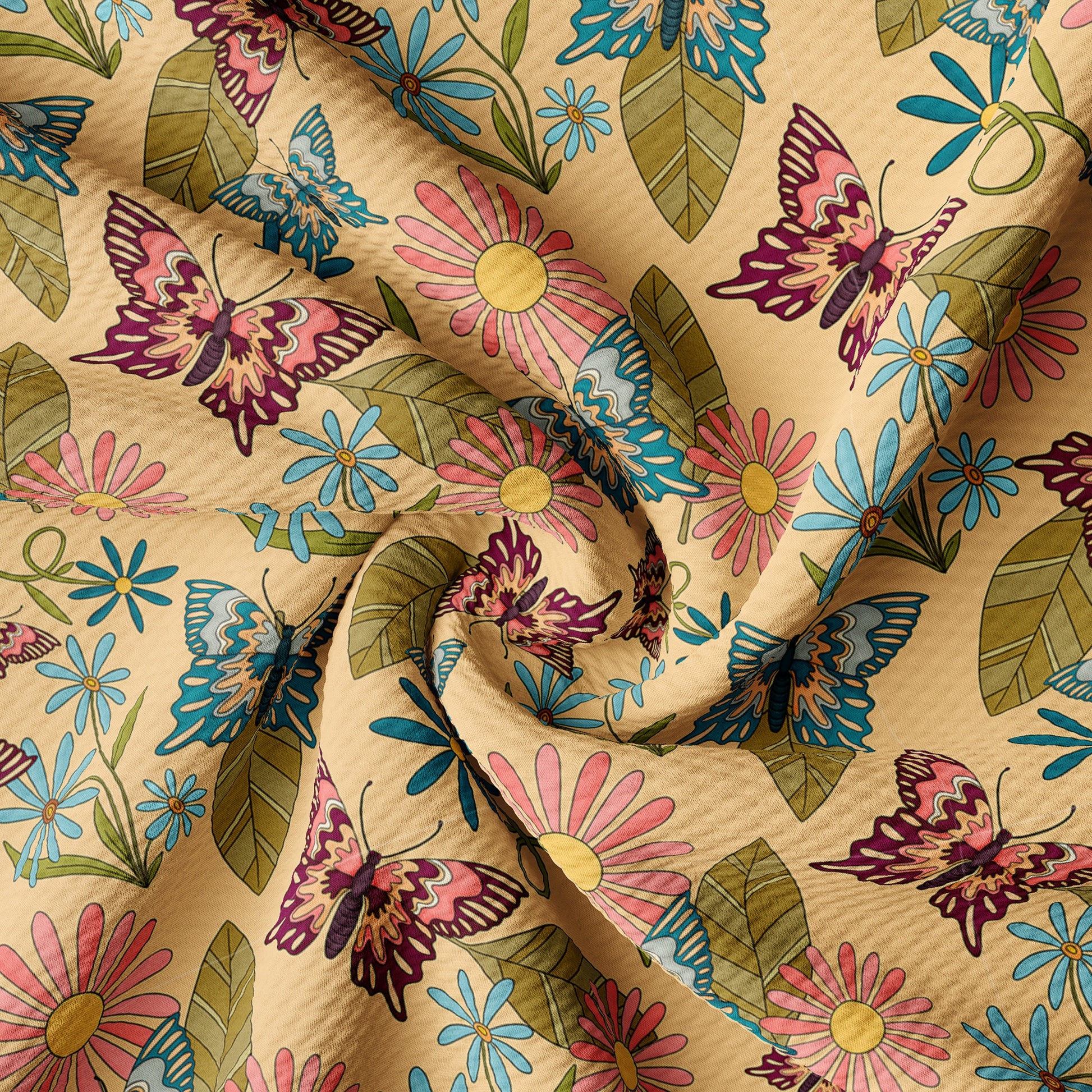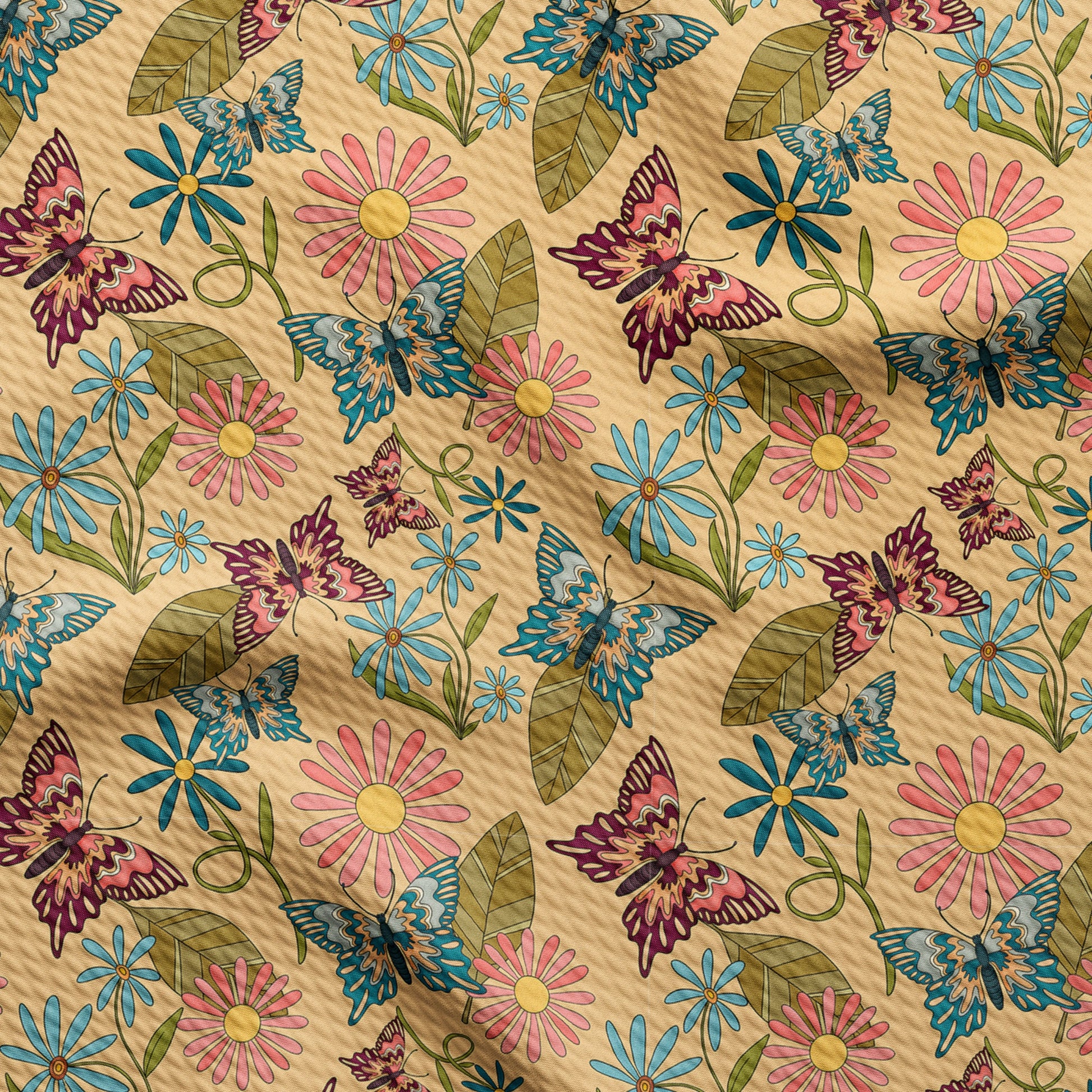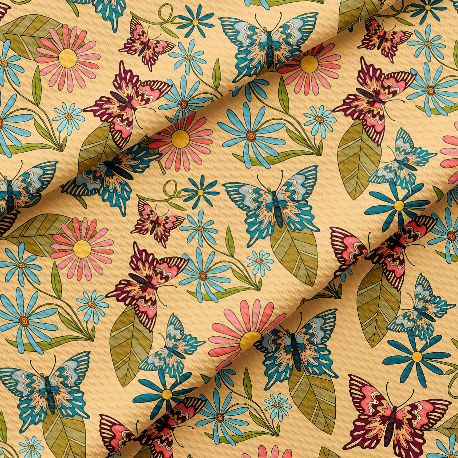 Retro Butterflies Smile Bullet Textured Fabric (Floral83)